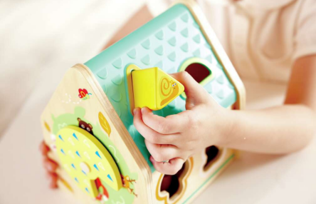 Clasificador de formas con diseño de casita y animalitos que enseña a los niños a encajar piezas mientras juegan. Incluye cinco bloques con formas de animales (oso, elefante, conejo, pájaro y zorro) y sus correspondientes huecos en la casita para que los pequeños los reconozcan y coloquen. Ideal para niños a partir de 12 meses.